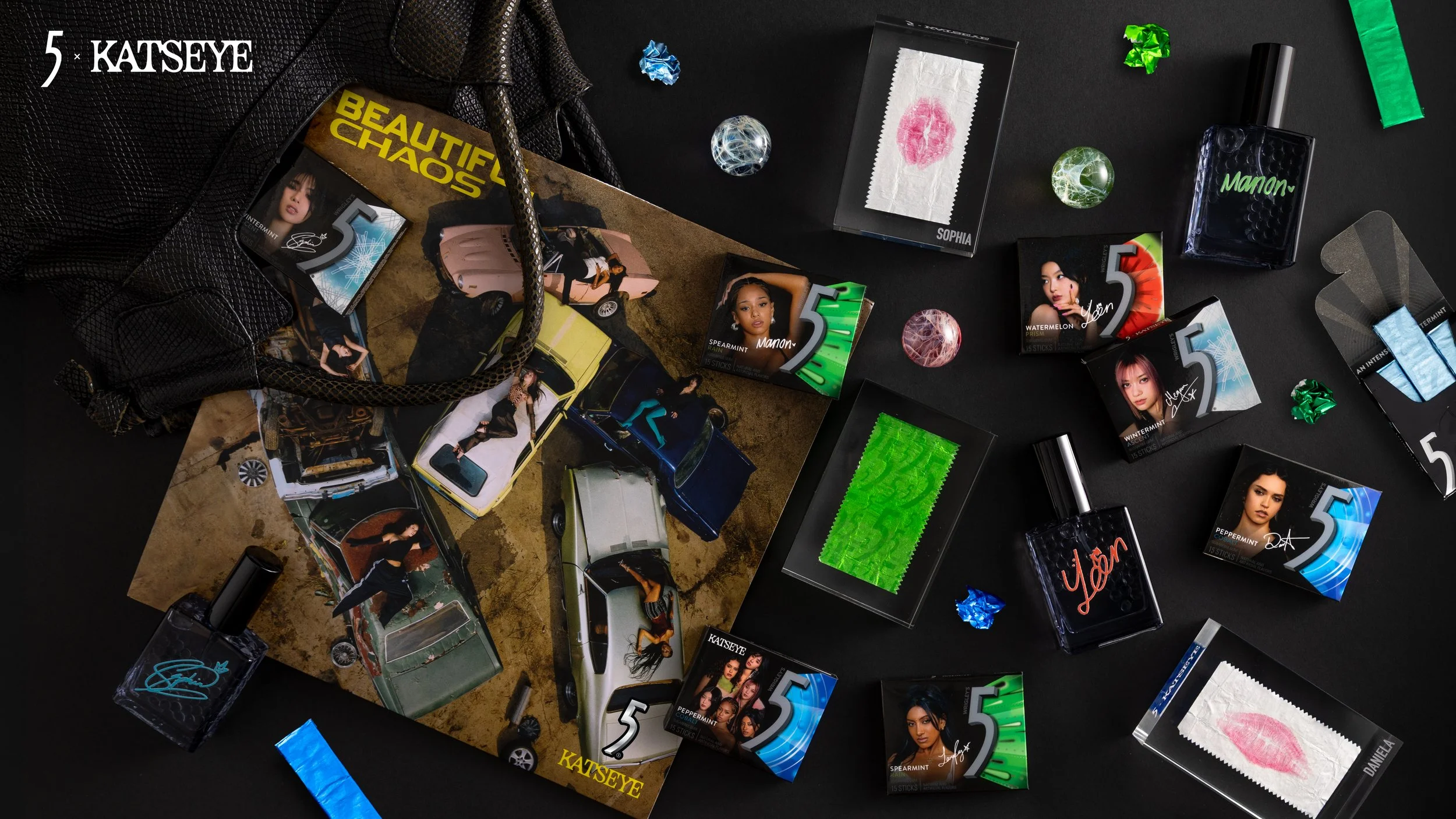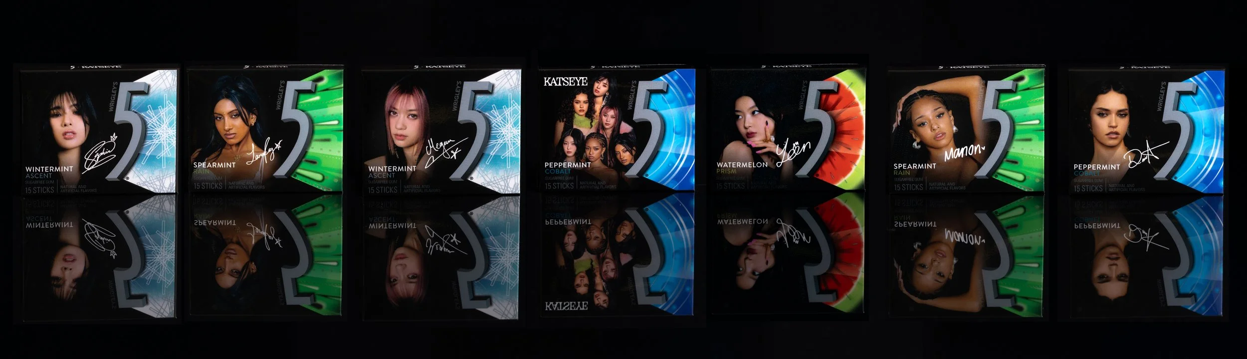 that not only show fans how it feels to chew 5 but makes them feel it too. Created to stimulate all five senses, the one-of-a-kind collectibles were made with each member of KATSEYE. Each member selected their favorite 5 flavor to serve as the base for their respective collection and added their own unique touch to every item.